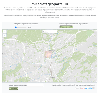 On https://minecraft.geoportail.lu, you can now order an extract of the country, that you can integrate into the Minecraft game.