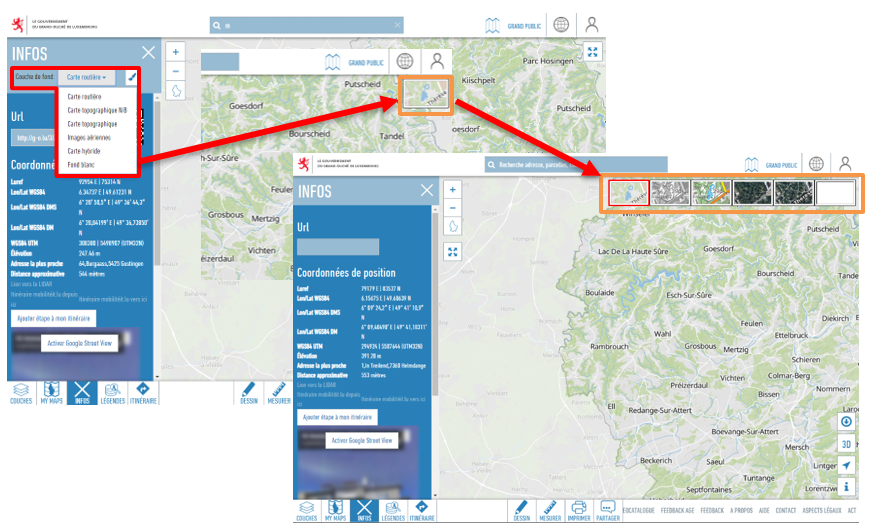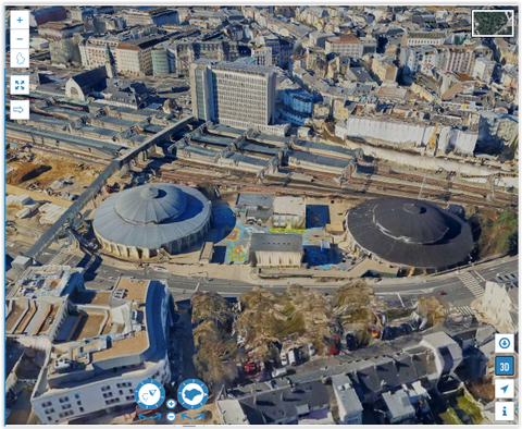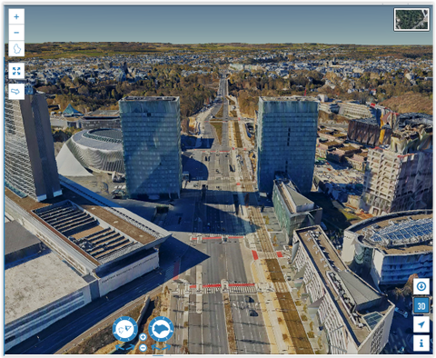 On the basis of the winter 2019 aerial images, ACT had a 3D model of the Luxembourg terrain calculated. A special mode has been introduced in the 3D view allowing to view this new 3D model. It is a first version of the model, with average precision, particularly in terms of the facades. The shots taken during 2020 will make it possible to provide a new, even more precise model in the future.