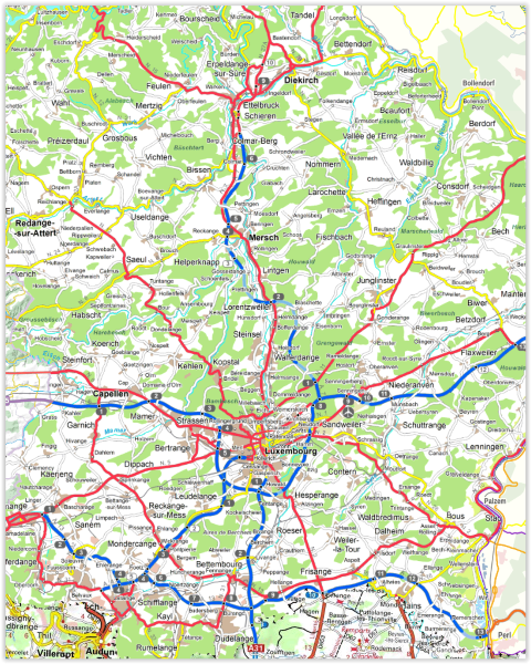 As with the road map in 2020, the topographic background maps for Luxembourg and its surroundings have been updated to use vector tiles technology.
